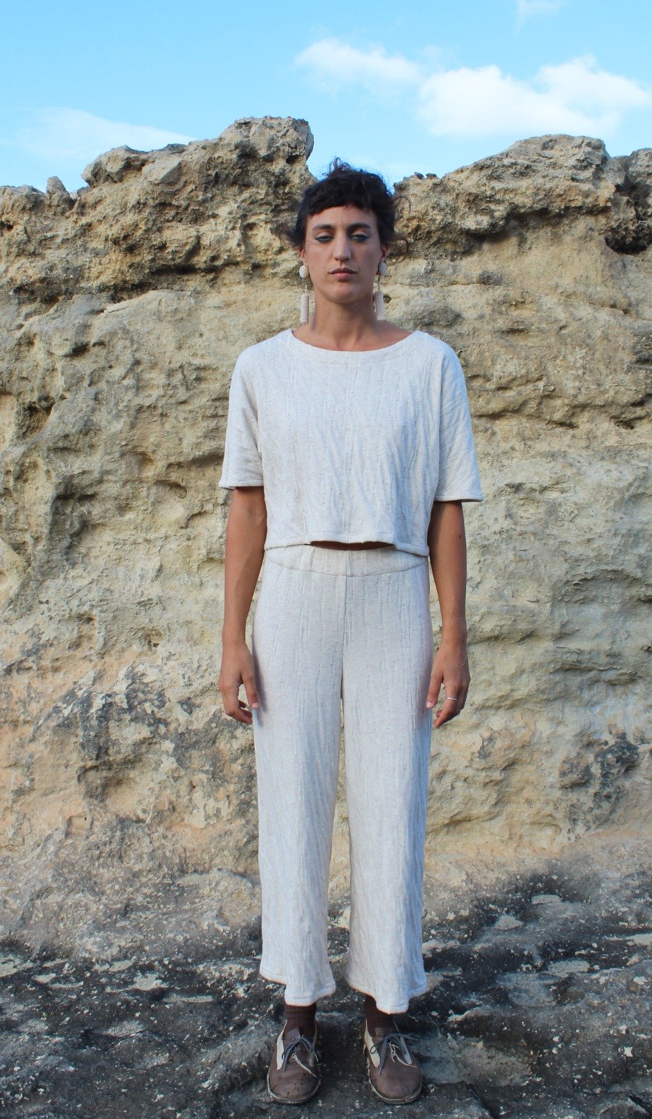 questi comodissimi pantaloni sono realizzati in un bellissimo tessuto che ha una lavorazione speciale a telaio.